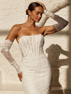Our Greenville bridal shop carries a curated collection of bridal gowns ranging from $1,800-$5,000 in a variety of sizes and silhouettes to compliment your unique style! Most of our sample gowns range from bridal size 10-12, and our curve gowns range from bridal size 16-24. Since we are a made-to-order boutique, each dress is specifically created just for you so most take between 6-8 months to arrive. If you're in a hurry, we have select designers that offer rush or in-stock options, as well as a collection of ready-to-wed gowns available for purchase off the rack.